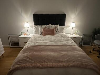 The tastefully decorated bedroom is a haven of tranquility, featuring a cozy bed that promises a restful night's sleep. Neutral tones and carefully chosen furnishings create a serene ambiance, ensuring you wake up refreshed and ready to tackle a new day.